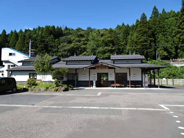 駅舎2010/08/29撮影2023/08/11駅舎前に狐像設置確認済み
