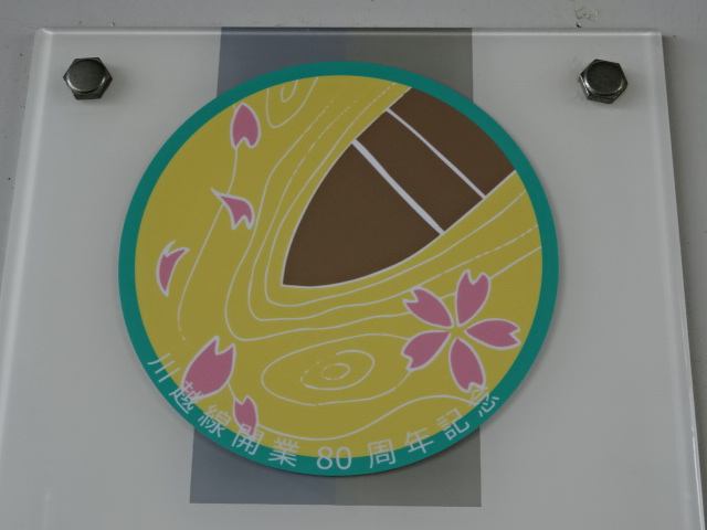 川越線開業80周年記念シール貼付の駅名標