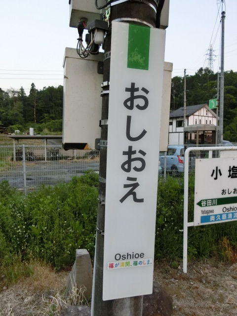 「奥久慈清流ライン」シール貼付前の駅名標